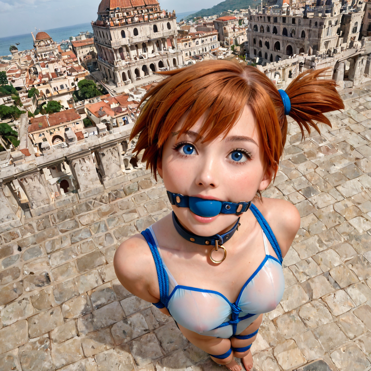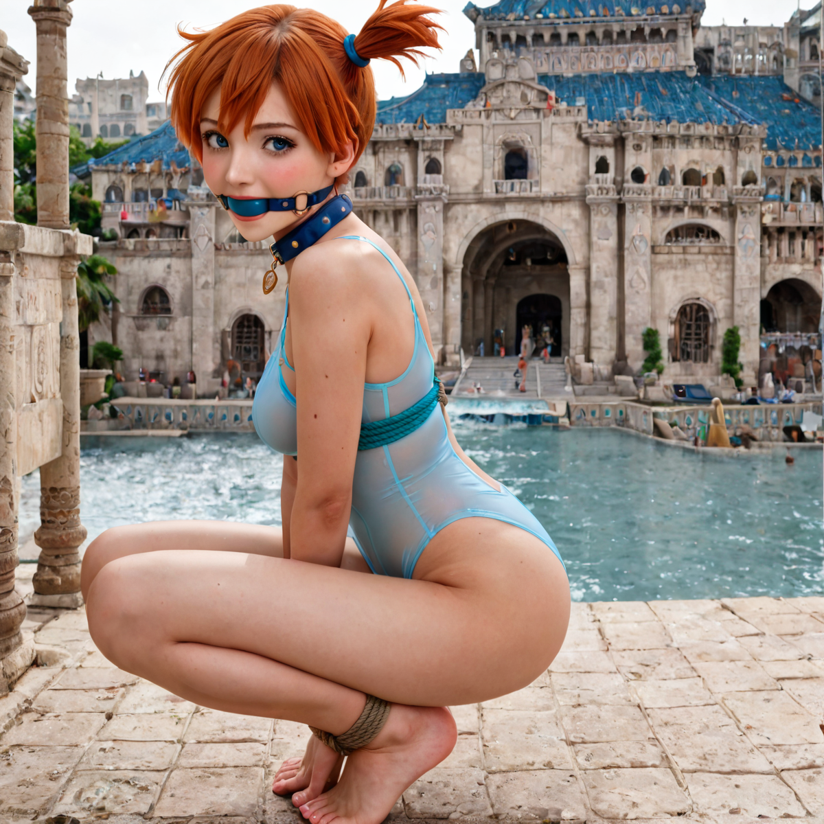 It’s the middle of summer (at least here in the United States). What better than to see our favorite gym leader, Misty, bound in the hidden world of Atlantis? She’s also wearing a size-to-small see-through swimsuit.