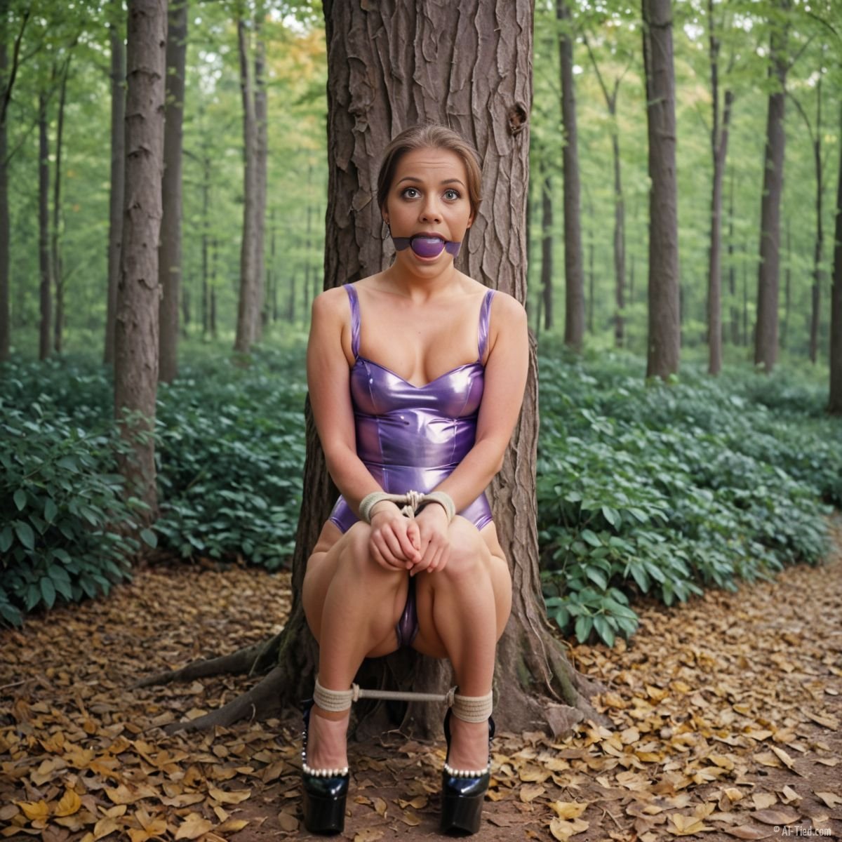 The camisole leotard is a versatile piece of clothing that embodies both simplicity and elegance. When tied and gagged, it transforms into an art form, each knot telling a story, each gag adding an element of mystery. The women in these images are not mere models; they are living canvases, embodying the essence of bondage fashion with grace and poise.