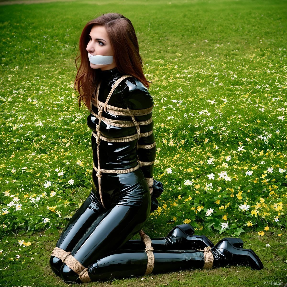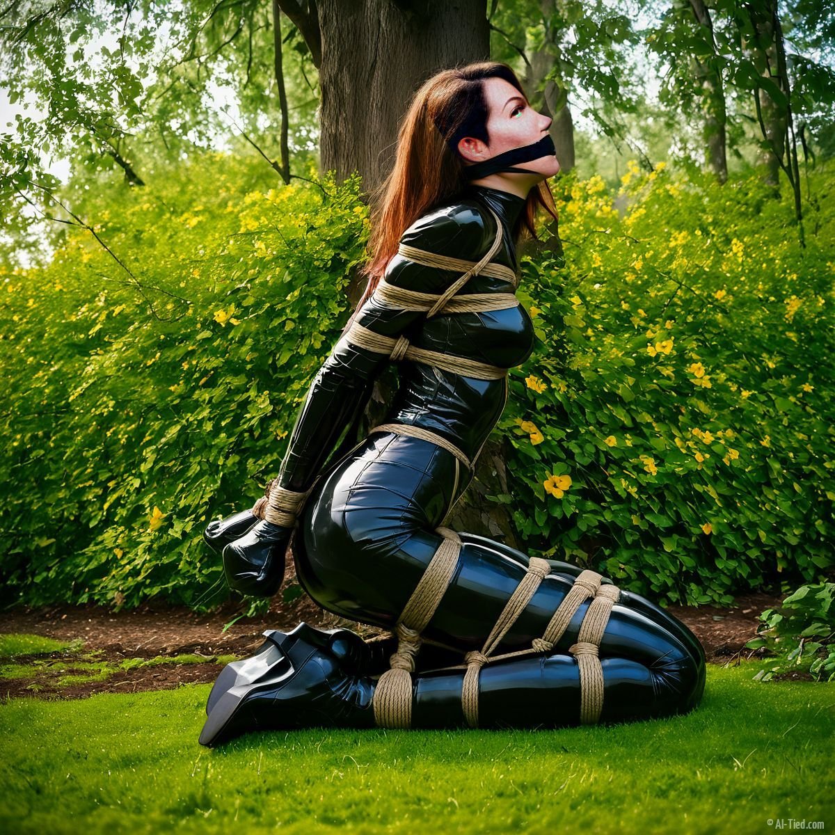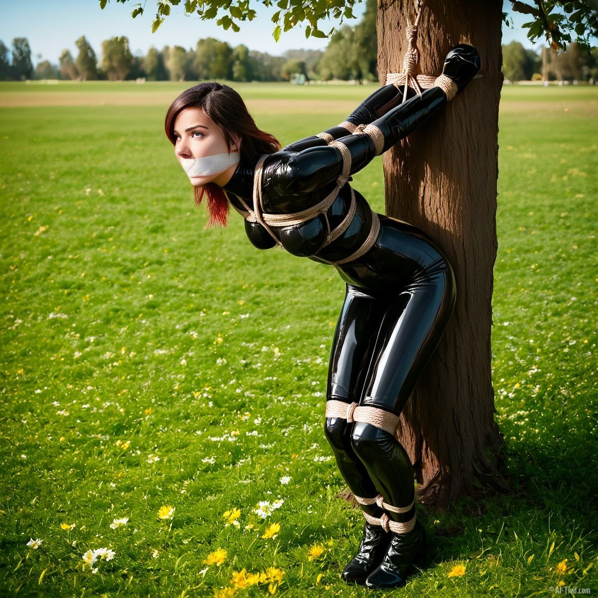 With spring in the air, she found herself bound and gagged outside. This shoot went on for hours, but she loved every minute of it. The calendar makers, not so much. So, instead of buying Lydia’s new calendar, you can see the images here!