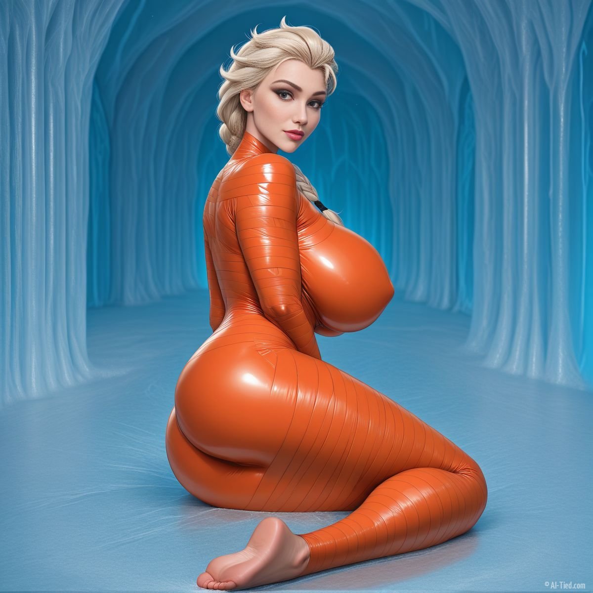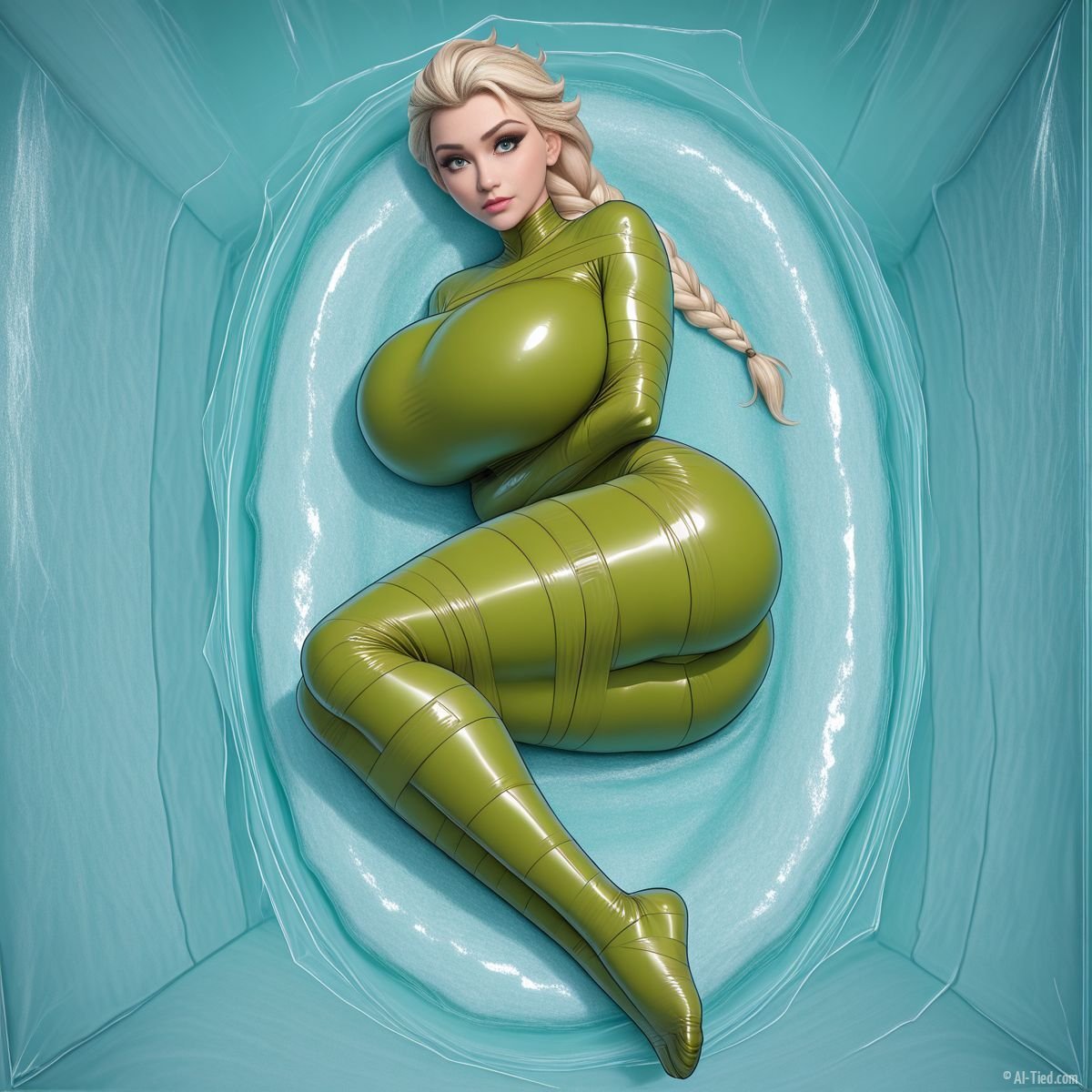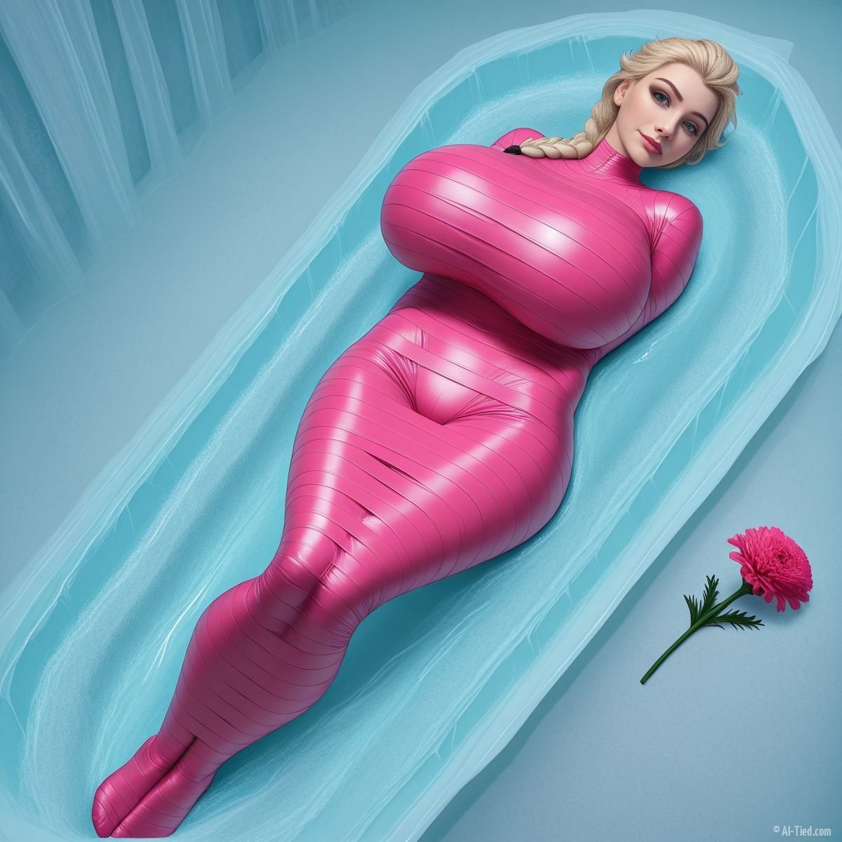 A low, broken moan escaped me as I finally lost the battle. My body gave out. I felt the hot, sudden flood release, a rush of warmth that poured out of me and spread across my bare skin under the tape. The piss pooled in the small of my back, soaked into the crack of my ass, spread across my thighs. It was trapped there, held tight against me by the unyielding duct tape, a warm and disgusting bath that had nowhere to go. The relief was brief, swallowed immediately by a wave of such crushing humiliation that I wanted to cease to exist. I lay there, broken, feeling the warmth turn cold and clammy against my skin. The smell reached me then, sharp and acrid, mixing with the chemical stink of the tape. I was the Queen of Arendelle, mummified in duct tape, cursed with these huge, heavy tits, and now lying in my own piss, marinading in it. I opened my mouth and screamed. I screamed until my throat was raw, a ragged sound of pure fury and despair that echoed off the ice and died.