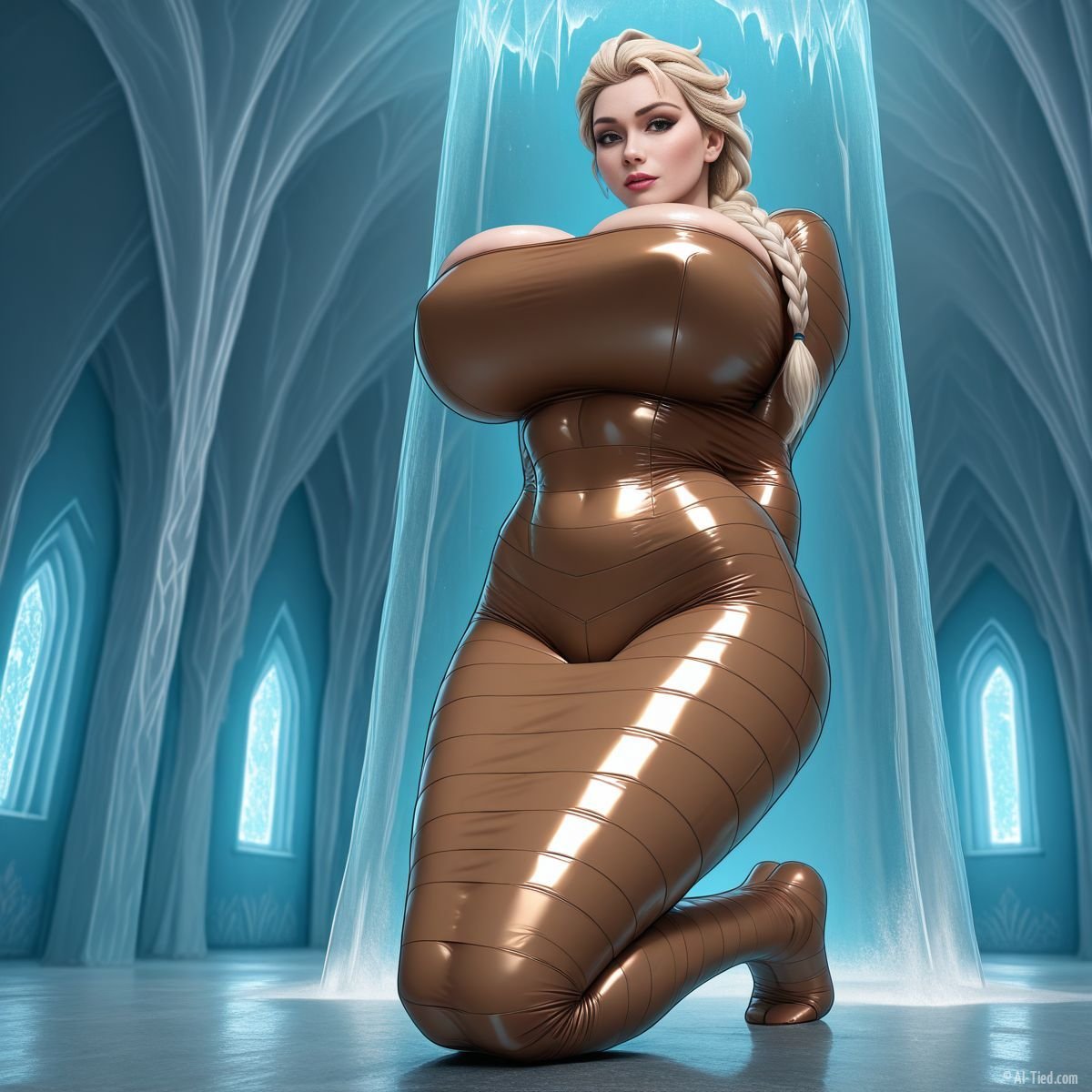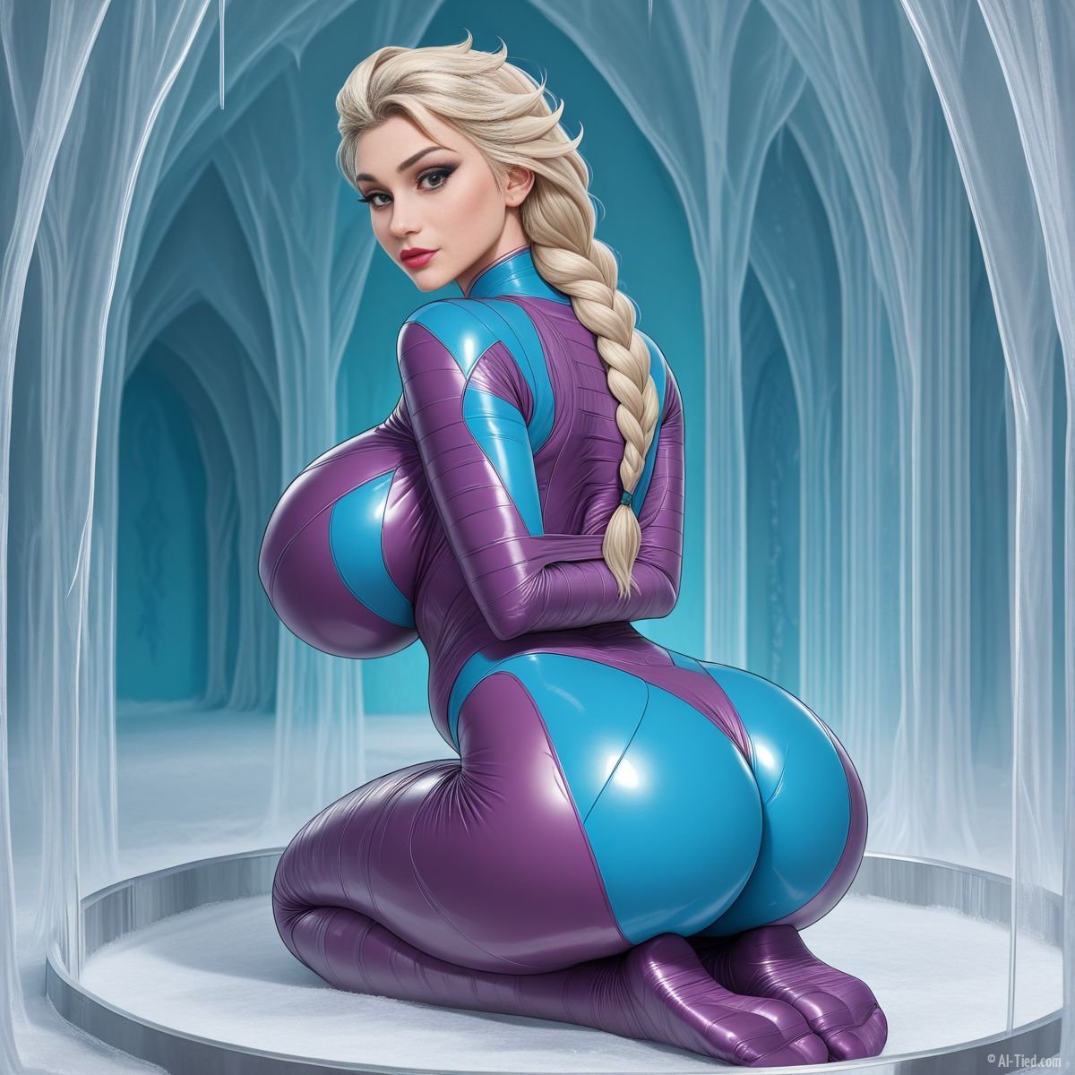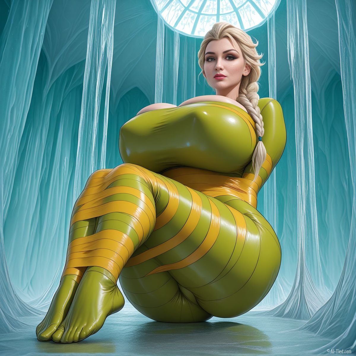 A low, broken moan escaped me as I finally lost the battle. My body gave out. I felt the hot, sudden flood release, a rush of warmth that poured out of me and spread across my bare skin under the tape. The piss pooled in the small of my back, soaked into the crack of my ass, spread across my thighs. It was trapped there, held tight against me by the unyielding duct tape, a warm and disgusting bath that had nowhere to go. The relief was brief, swallowed immediately by a wave of such crushing humiliation that I wanted to cease to exist. I lay there, broken, feeling the warmth turn cold and clammy against my skin. The smell reached me then, sharp and acrid, mixing with the chemical stink of the tape. I was the Queen of Arendelle, mummified in duct tape, cursed with these huge, heavy tits, and now lying in my own piss, marinading in it. I opened my mouth and screamed. I screamed until my throat was raw, a ragged sound of pure fury and despair that echoed off the ice and died.